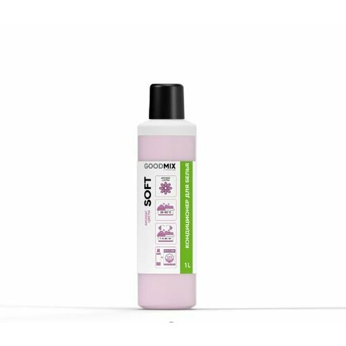 Кондиционер ополаскиватель высококонцентрированный для стирки текстильных изделий GoodMix Soft. Придает белью мягкость и тонкий свежий аромат. Обладаетантистатическим эффектом на синтетических тканях, а также облегчает процессы сушки и глажения белья. Высококонцентрированный состав средства позволяет работать в малой дозировке. Mix Soft обладает низкой вязкостью и применим для любых стиральных машини дозирующих систем, может использоваться при ручном полоскании. Проявляет активность в мягкой и в жесткой воде. Превосходное решение для финишной обработкибелья. Нас ищут: кондиционеры для белья концентрированный кондиционер для белья средство для стирки белья ополаскиватель для стирки гипоаллергенный стирка.