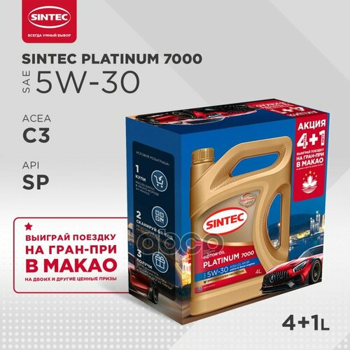 SINTEC Акция Масло Моторное 5w30 Sintec 4+1л Синтетика Platinum 7000 C3 (5л По Цене 4)