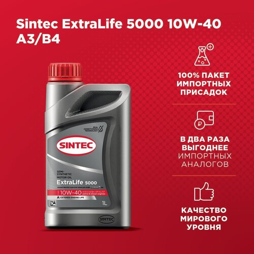 Моторное масло SINTEC синтетическое EXTRALIFE 5000 SAE 10W40 API SL/CF ACEA A3/B4 1л