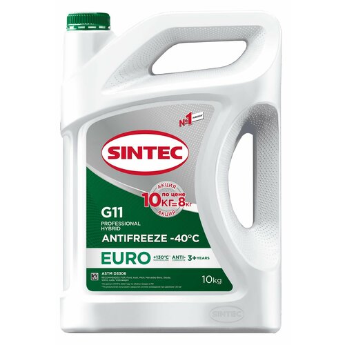 Антифриз Sintec Euro зеленый G11 (-40) 10 кг по цене 8 кг SINTEC 990582 | цена за 1 шт