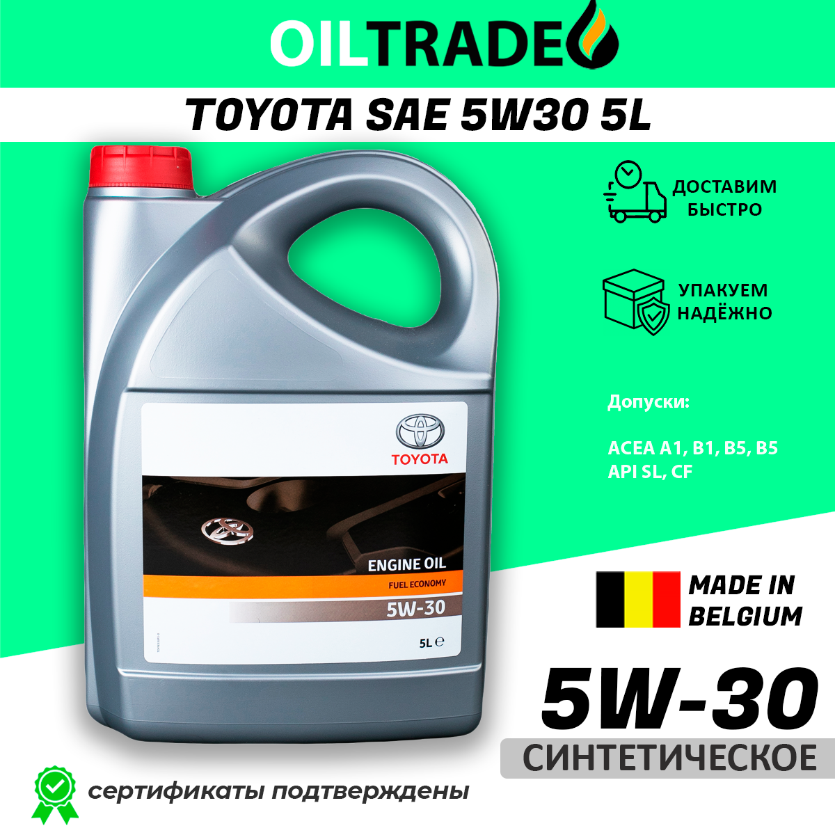Номер 0888080845. Синтетическое моторное масло тойота 5W30 предназначено для использования в дизельных и бензиновых двигателях, включая модификацию с турбинами. Масло toyota 5W-30 является всесезонным материалом, может использоваться при температурах от –35°C до +40°C. При низких температурах имеет высокий коэффициент текучести, поэтому быстрее поступает к трущимся деталям и уменьшает трение при холодном запуске, повышая моторесурс и топливную экономичность.Масляная основа обладает отличным противоокисилительным свойством и предотвращает отложения на внутренних элементах двигателя, повышая срок эксплуатации без потери свойств масла toyota fe 5w40. масло моторное обладает специальной основой, которая позволяет повысить адгезию к металлу. Поэтому масло toyota fe 5W-30 дольше остается на стенках двигателя, продлевая срок его службы.