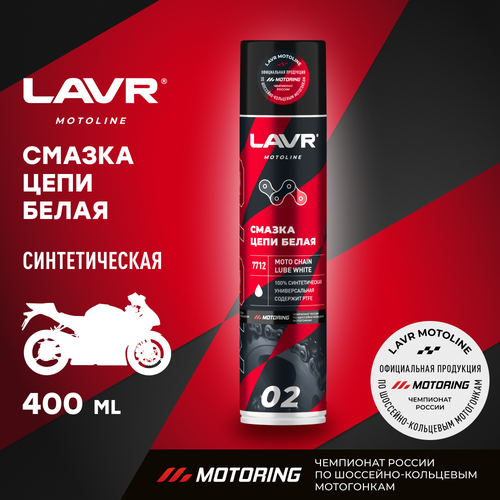 Смазка цепи для мотоциклов белая LAVR, 400 мл / Ln7712