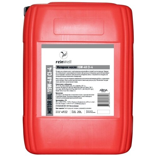 Моторное масло REINWELL 15W-40 CI-4 синтетическое 20 л