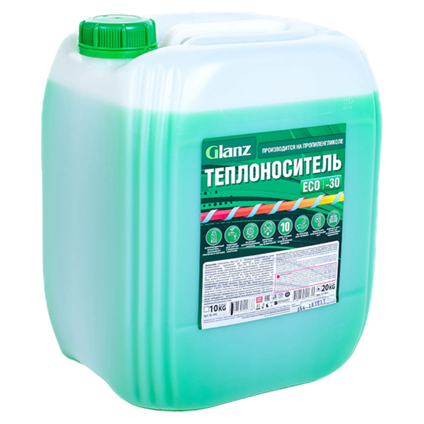 Теплоноситель (-30; 20 кг; пропиленгликоль) ECO Glanz GL403 является безопасным теплоносителем на базе пропиленгликоля, специализирован для всевозможных систем отопления и кондиционирования. Подойдет как для одноконтурных, так и для двухконтурных систем отопления в качестве рабочей жидкости, обеспечивающий работу в спектре температур от -30°С до +106°С . Перед заливкой теплоносителя Glanz ECO в новую систему отопления нужно провести гидроиспытания и проверить ее работу.
