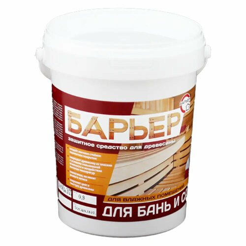 Защитно-декоративный антисептик для древесины бани и сауны лессирующий Барьер полуматовый бесцветный 0.9 кг