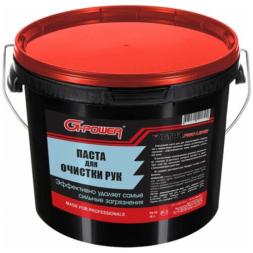 Паста для очистки рук G-POWER Victor Pro Line 10л PS-12 – профессиональное средство для очистки кожи рук от стойких загрязнений различного происхождения. Быстро и эффективно удаляет глубоко въевшуюся грязь, землю, консистентные смазки, чернила, сажу, битум, краску, следы клеёв и герметиков. Содержит набор антисептических и косметических средств для увлажнения и смягчения кожи рук. Не вызывает аллергии. Имеет приятный аромат. Применение: нанести 2-3 г. на руки, тщательно растереть, смыть водой. Меры предосторожности. При попадании в глаза – тщательно промыть водой.