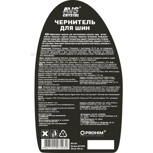 Чернитель Шин Black Tyre (Триггер 500 Мл) Avs Avk-601 Avs A07403s AVS арт. A07403S