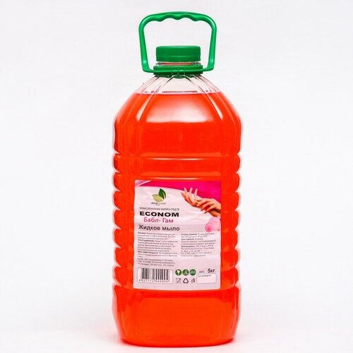 Жидкое мыло ECONOM "Бабл-Гам" хорошо подходит для очищения кожи от любых загрязнений, обладает приятным натуральным ароматом. pH 7.Способ применения: нанести небольшое количество мыла на кожу, добиться образования пены и смыть водой. При сильных загрязнениях обработку повторить. Используется в дозаторах жидкого мыла.Меры предосторожности: припопадании в глаза промыть большим количеством воды и обратиться к врачу. Состав: > 30% очищенная вода, 2-10% смесь апав, <5% нпав, <5% комплексообразователь, <5% консервант, <5% краситель, <5% отдушка.Объем: 5 л.