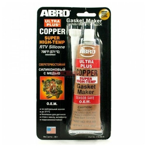 Герметик силиконовый (США) 85 гр. Сверх выс/темп (медь) 418-AB-R 418ABR ABRO 1582335
