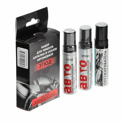 Мелкие повреждения, сколы, счёсы или царапины, могут легко устраняться самостоятельно, без обращения к специалистам на СТО. Набор для ремонта царапин и сколов автомобиля этюд – идеальный реставрационный комплект для устранения незначительных дефектов на лакокрасочном покрытии автомобилей. Тонкая кисточка позволяет аккуратно закрасить царапину или скол, не выходя за пределы повреждения. Правильно подобрать нужный оттенок эмали поможет оригинальный образец цвета на крышке реставрационного карандаша. Автомобильный бесцветный лак этюд 12 мл – это финальный защитный слой для автомобильных эмалей, защищает покрытие от химических и физических повреждений.