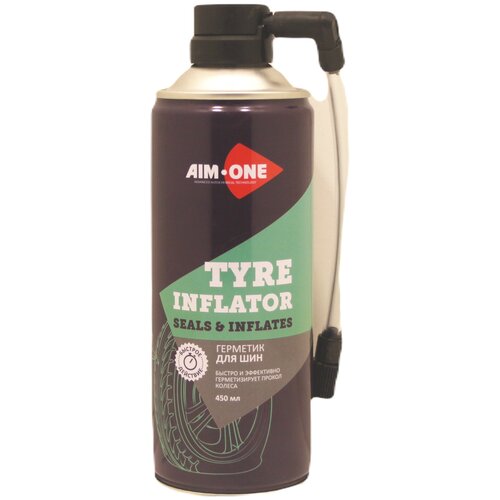 Tyre Inflator — быстродействующий герметик для шин, который устраняет проколы диаметром до 5 мм. Продукт незаменим на дороге: прост и удобен в использование, без применения специального инструмента, оперативно заполняет прокол и создает долговечное покрытие. Средство подходит для шин автомобилей и других видов транспорта.преимущества герметика TYRE INFLATOR AIM-ONE:удобен и прост в применение;быстро действует;альтернатива ремонту;безвреден для резины.эффективный И удобныйГерметик предлагается в удобном баллоне, оснащенном специальным механизмом для заправки в шины через стандартный ниппель. Состав образует внутри покрышки прочную и стойкую вулканизирующую пленку, которая обволакивает резину и заполняет все неровности, включая небольшие проколы. Тем самым восстанавливается герметичность шины.После применения достаточно проехать на автомобиле небольшое расстояние, чтобы средство оптимально распределилось по поверхности резины. Продукт не токсичен, не наносит вреда резиновым материалам, не нарушает баланс колес.Tyre Inflator рассчитан на любительское использование: он позволяет устранить дефект в аварийном режиме, не имея специальных навыков и инструментов для ремонта.