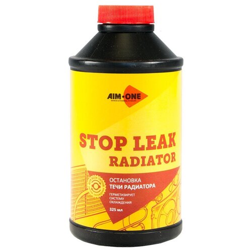 Присадка Stop Leak Radiator эффективно устраняет течи в радиаторе и других элементах автомобильной системы охлаждения. Благодаря формуле, разработанной на основе металлических волокон, средство быстро заполняет мелкие трещины, препятствуя потере охлаждающей жидкости. Это способствует нормальному и безопасному функционированию двигателя автомобиля.преимущества STOP LEAK RADIATOR:быстро действует;удобно в применении;безвредно для оборудования (шлангов, труб).для компактных И больших машинСтоп течь радиатор Aim-One эффективно действует внутри радиатора и других частей системы охлаждения, не нарушая ее работы. Присадка имеет сбалансированный состав, не наносит вреда материалам шлангов и труб, применима в разных видах машин.Stop Leak Radiator выпускается в удобных небольших бутылках. Каждая емкость (325 мл) рассчитана на радиаторы объемом не более 10 литров, которые устанавливаются на компактные автомобили. Для более крупных машин используются две бутылки (если объем радиатора превышает 10 литров).Продукт подходит для профессионального и любительского применения. Для того чтобы защитить радиатор от течи, достаточно добавить содержимое бутылки в охлаждающую жидкость.