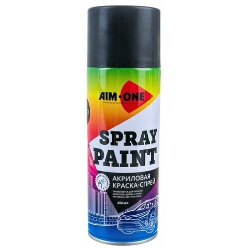 Краска акриловая RAL-9005M чёрный матовый (аэрозоль) 450мл AIM-ONE /1/12 NEW