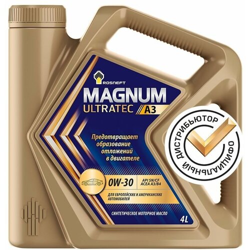 Масло моторное Роснефть Magnum Ultratec A3 0w-30 (4 л) синт. SN/CF, A3/B4