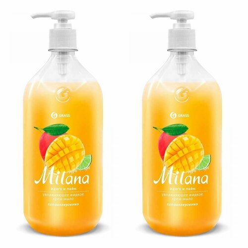Grass Крем-мыло жидкое Milana, Манго и лайм, увлажняющее, 1000 мл, 2 штуки/