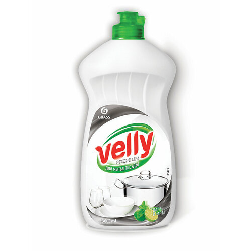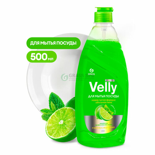 Grass Средство для мытья посуды густое концентрированное, Velly Premium Лайм и мята, 500мл