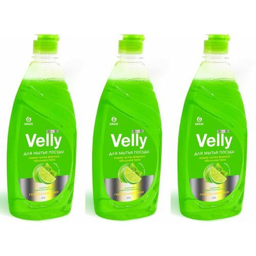 Grass Средство для мытья посуды "Velly" Premium, Лайм и мята, флакон 500 мл, 3 шт