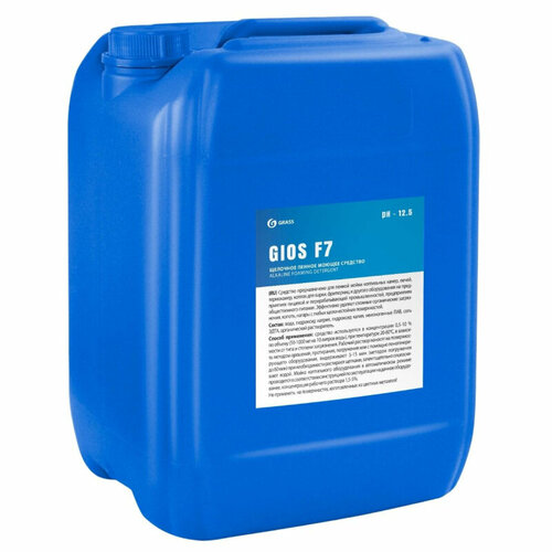 Моющее средство для тары и оборудования на пищевом производстве Gios Grass F7 18.5 (концентрат) Назначение: средство предназначено для пенной мойки коптильных камер, печей, термокамер, котлов для варки, фритюрниц и другого оборудования на предприятиях пищевой и перерабатывающей промышленностей, предприятиях общественного питания. Эффективно удаляет сложные органические загрязнения, копоть, нагары с любых щелочестойких поверхностей. Способ применения: средство используется в концентрации 0,5-10 % по объему (50-1000 мл на 10 литров воды), при температуре 20-80°С, в зависимости от типа и степени загрязнения. Рабочий раствор наносят на поверхность методом орошения, протирания, погружения или с помощью пеногенерирующего оборудования, выдерживают 5-15 мин (методом погружения до 60 мин) при необходимости растирают щетками, затем тщательно ополаскивают водой. Мойка коптильного оборудования в автоматическом режиме проводится в соответствии с инструкцией по эксплуатации на данное оборудование, концентрация рабочего раствора 1,5-5%. Состав: ?30% очищенная вода, ?15%, но <30% гидроксид натрия, ?5%, но <15% гидроксид калия, <5% неиогенные ПАВ, комплексообразователь. Условия хранения: хранить в сухом месте, изолированном от влаги, прямых солнечных лучей, вдали от отопительных приборов, в недоступном для детей месте. Продукт замерзает, после размораживания сохраняет свои свойства. Срок годности: 36 месяцев с даты изготовления.