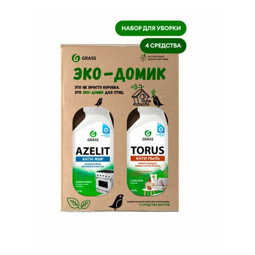 Наполнение набора № 2:Azelit - Концентрированное средство для удаления жира, нагара и копоти со сковородок, кухонных плит, коптильных камер, фритюрниц, грилей, духовых шкафов и др.Sidelit - Универсальное чистящее средство для кухни и ванной комнаты с отбеливающим эффектом. Идеально для ухода за кухонной плитой, раковиной, сантехникой и другими поверхностями.Dos-Gel - Универсальный чистящий гель для дезинфекции и отбеливания. Идеально подходит для чистки унитазов, ванн, раковин, кафеля, стоков, сливов, пола и рабочих поверхностей.Torus - Средство предназначено для восстановления и и сохранения естественного вида деревянных поверхностей.