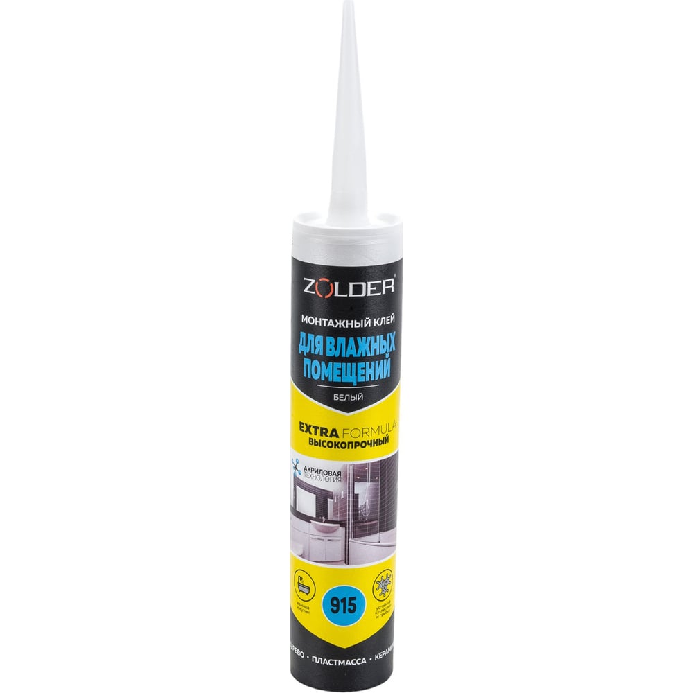 Товарное предложение: Монтажный клей (жидкие гвозди) для влажных помещений (570 г), ZN-915, ZOLDER, белый