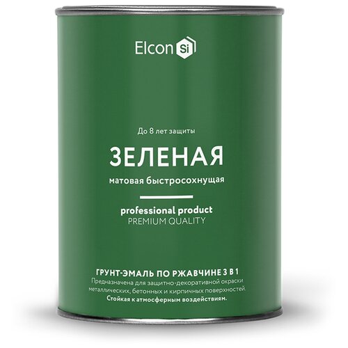 Грунт - эмаль по ржавчине Elcon 3 в 1 матовая, зеленая, 0.8 кг 00-00462299