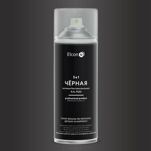 Грунт-эмаль по ржавчине 3 в 1 Elcon черная, аэрозоль 520 мл