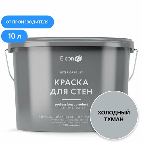 Акриловая краска премиум-класса Elcon, декоративная, моющаяся, быстросохнущая, для стен, обоев, потолка, бетона, кирпича, дерева, холодный туман, 10 л
