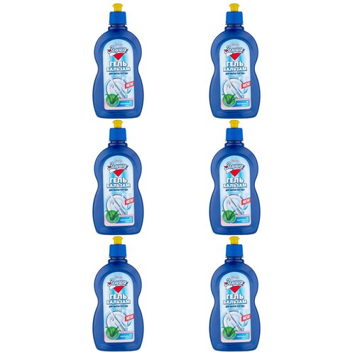 6 штук. Гель-бальзам бережно относится к коже рук, не нарушая ее естественный защитный барьер. Специально подобранные компоненты формулы не вызывают сухости и раздражения кожи, при этом отлично расщепляют жир и грязь даже в холодной воде. Способ применения: Нанесите небольшое количество средства на губку (посуду), потрите, затем смойте водой, или растворите 1 чайную ложку средства в 4-5 л воды. После мытья сполосните посуду водой.