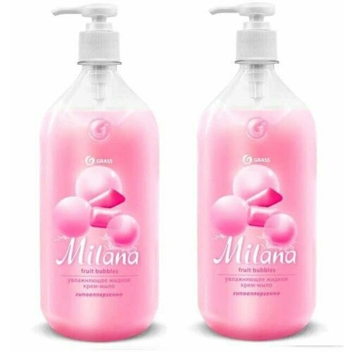 Grass Крем-мыло жидкое Milana, Fruit bubbles, увлажняющее, 1000 мл, 2 штуки/