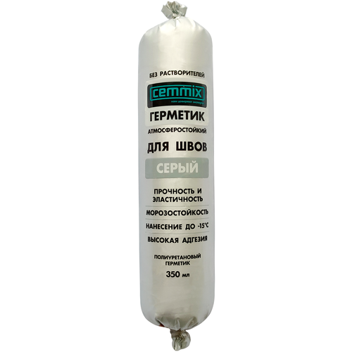 Клей-герметик для швов Cemmix – однокомпонентный высокомодульный полиуретановый герметик, подходит для герметизации швов из различных материалов шириной до 20 мм, в том числе подвергающихся постоянному воздействию воды и вибрации. Обеспечивает надёжное скрепление деталей из черепицы, кирпича, металла, дерева и других материалов. Атмосферостойкий. Работы по нанесению герметика можно выполнять при отрицательных температурах. Применяется: - Для заполнения и герметизации деформационных швов в промышленных полах и других вертикальных, горизонтальных и потолочных швах; - Для гидроизоляции и герметизации при кровельных, плотничных, слесарных работах; - Для герметизации монтажных соединений санитарно-технических изделий; - Для герметизации и гидроизоляции швов сэндвич-панелей; - Для герметизации мест прохода инженерных коммуникаций через различные строительные конструкции (в т.ч. подверженных вибрации); - Для прочного склеивания черепицы, кирпича, металла и других материалов; - Одинаково подходит для внутренних и наружных работ. Основа: полиуретан; Внешний вид материала: паста; Плотность: 1,5 кг/л; Скорость полимеризации (при +23 °С и 65% относительной влажности): 3 мм/сутки; Допустимая деформация: ±25 %; Относительное удлинение при разрыве: 250 %; Твердость по Шору: 40; Температура эксплуатации: от -40 до +90 °С; Температура нанесения: от +5 до +40 °С; Температура транспортировки: от -10 до +35 °С; Начальное время полимеризации: 75 мин; Цвет: серый; Объём: 350 мл.