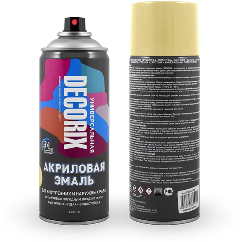 Аэрозольная краска универсальная DECORIX, акриловая, кремовый, 520 мл
