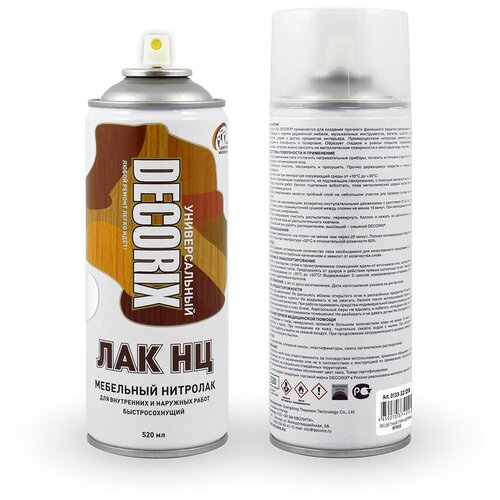 Нитролак (НЦ) DECORIX® применяется для создания прочного финишного защитно-декоративного покрытия при реставрации и отделке деревянной мебели, музыкальных инструментов, багетов, шкатулок, перил, паркета, плинтусов, дверей и других предметов интерьера.Преимуществом нитролака является высокая скорость высыхания и способность к полировке. Образует гладкое и ровное покрытие, подчёркивающее текстуру древесины.Нитролак можно наносить на металлические поверхности и некоторые виды пластмасс.