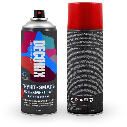 Грунт эмаль по ржавчине 3 в 1 в аэрозоли Decorix глянцевая (520мл) красный (0106-04 DX)