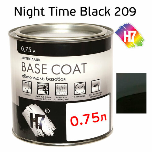Однокомпонентная базовая авто эмаль H7 (банка 0,75 л) цвет Тойота 209 Night Time Black (эталон Мобихел) черный перламутр• наличие: 6 шт.• код товара: 39543• артикул: 384417—————————————Предназначается для окраски поверхности кузова автомобиля в качестве первого слоя в двухслойной системе покрытия в комплекте с двухкомпонентным акриловым лаком, а также для ремонтной окраски кузова и деталей автомобилей по старому покрытию.—————————————• Представляет собой суспензию эффектных и цветных пигментов в растворе полиэфирной, меламиновой смол с введением целевых добавок.• В качестве базисного слоя в двухслойном покрытии с верхним прозрачным лаком для окраски предварительно подготовленных металлических поверхностей кузова и деталей автомобилей. Преимущества: • высокие декоративные качества комплексного покрытия• долговечность покрытия. Подготовка поверхности: • Поверхность очистить, обезжирить, загрунтовать.• При нанесении на старое покрытие оно должно быть отшлифовано, обезжирено и высушено.—————————————Технические характеристики:• оптимальная Т нанесения: +20° С• минимальная Т нанесения: +15° С• влажность воздуха: не более 75%.• разбавление: до 25-50 %.• рабочая вязкость: 15-17 сек• сопло краскопульта: 1,2-1,5 мм• число слоев: 2-6 в зависимости от цвета• межслойная выдержка: 5-10 мин при +20° С• выдежка перед лаком: 10-15 мин• толщина покрытия: 15-25 мкм• расход: 50 -100 г/м2 на один слой• гарантийный срок хранения: 36 мес