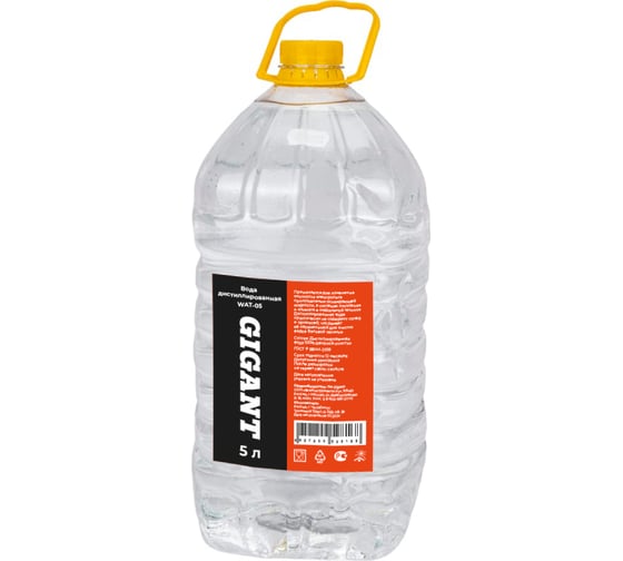 Дистиллированная вода Gigant 5 л WAT-05 проходит многоступенчатую очистку. Широко применяется в бытовых и медицинских целях, а также при разведении концентратов охлаждающих жидкостей, теплоносителей, для корректировки электролитов.Технические характеристикиОбъем: 5 лТемпература замерзания: -10 °СВес нетто: 5.4 кгГабариты без упаковки: 150х330х140 ммПреимуществаПозволяет избежать образования накипи, осадка, налета.Проходит многоступенчатую очистку.