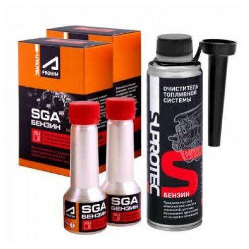 Набор из двух типов присадок: топливная SGA и очиститель топливной системы бензин.Очиститель топливной системы Бензин“Очиститель” – комплексное средство, которое связывает конденсат в топливном баке, постепенно растворяет отложения в холодной части топливной системы и способствует выжиганию органических компонентов сажи. За счет такого комплексного воздействия:нормализуется давление топлива, улучшается впрыск, а следовательно полнота сгорания топлива.снижается расход топлива.продлевается срок службы насосов и форсунок, откладывается необходимость в их ремонте и замене.улучшается приемистость двигателя, за счет своевременного повышения давления в системе при смене режима езды.выравнивается работа двигателя, за счет равномерного сгорания топлива по цилиндрам.продлевается срок службы моторного масла, за счет уменьшения загрязнения его несгоревшими частицами топлива.снижается нагрузка на турбину, катализаторы, дожигатели топлива.Бензиновая присадка в бак – SGAОчистка насосов, снижение износа плунжеров нормализует давление топлива в системе. Очистка клапанов, каналов и сопла форсунок – продлевает их срок службы. Все вместе это обеспечивает качественный распыл топлива и более полное его сгорание, что приводит к следующим эффектам:снижение расхода топлива на 5%-15% в зависимости от состояния автомобиля.продление срока службы топливной аппаратуры.снижение вибраций за счет равномерного сгорания топлива в цилиндрах.снижение нагрузки на турбину, катализаторы, дожигатели топлива, что продлевает их ресурс.снижение загрязнений в моторном масле, что сохраняет его рабочие свойства и в конечном итоге сокращает износ двигателя