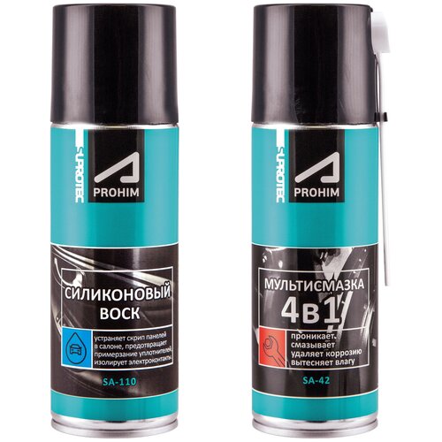 Набор из одного флакона Силиконовый Воск 200мл и одного флакона Жидкий ключ Мультисмазка 4в1 200мл.Силиконовый Воск, он же Антискрип, он же Силиконовая смазка.Силиконовая смазка - хорошо известное средство для решения многих задач как в быту, так и в машине. В отличие от многих других продуктов этого типа Силиконовый воск от Супротек при высыхании образует плотную и эластичную пленку, а не остается на поверхности в виде маслоподобной жидкости. Это главное отличие обеспечивает конкурентное преимущество "Силиконового воска".- смазывает сочленения пластиковых, кожаных и резиновых деталей обшивки салона, устраняя шум, выполняя функции антискрипа. При том Воск не оставляет расплывчатых пятен на обшивке;- силикон защищает резиновые уплотнители дверей, багажника, стекол от примерзания, отталкивая воду. При этом Воск не смазывается, не стекает, не пачкает одежду при соприкосновении;- защищает резиновые и пластиковые детали корпуса от пересыхания при жаркой погоде;- предотвращает замерзание механизмов замков, петель, выталкивая воду. При этом к пленке Воска, благодаря ее плотности не прилипает пыль и не скапливается внутри механизма, что происходит при использовании жидких смазок;- предотвращает попадание влаги на аккумуляторные клеммы и в электроразъемы, защищая их от коррозии. При этом Воск не стекает, обеспечивая долговременную защиту;- защищает от налипания снега и разрушения ультрафиолетом щетки стеклоочистителей, сохраняя их эластичность и качество прилегания к стеклу;- продлевает ресурс эластичности и упругости разнообразных резинотехнических деталей: подушки крепления двигателя и глушителя; пыльники распределителей рулевой рейки; пыльники, втулки, опоры амортизаторов, вставки сайлентблоков в системах подвески и привода.Жидкий ключ Мультисмазка 4в1.Мультисмазка - это универсальное многофункциональное средство для упрощения монтажа и демонтажа конструкций с резьбовыми соединениями, облегчения движения трущихся деталей механизмов, защиты металлических деталей от коррозии. Мультисмазка:- имеет высокую проникающую способность, что позволяет смазывать и размораживать соединения прикипевших и проржавевших деталей, облегчать их страгивание; - имеет надежные смазывающие свойства, что позволяет существенно снижать трение деталей, предотвращать поверхностное «закисание» металла на длительный срок;- устраняет коррозию, разделяя соединения окислов металла на мелкие частицы;- вытесняет влагу, что позволяет эффективно обрабатывать влажные поверхности, существенно снижать дальнейшую коррозию смазанных поверхностей.