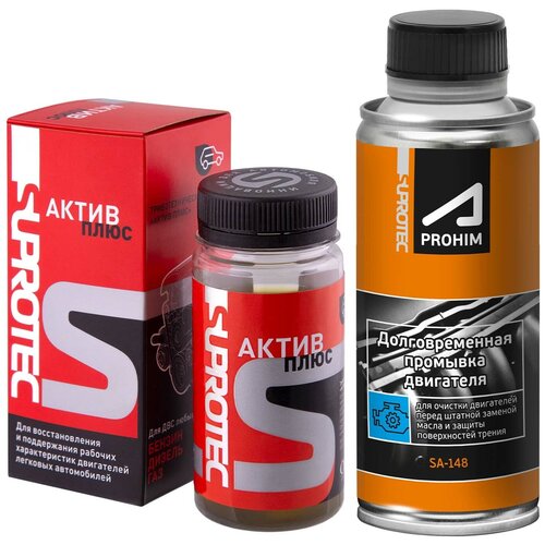 Набор присадки в моторное масло Актив Плюс 1шт и Промывка двигателя 1шт, Супротек