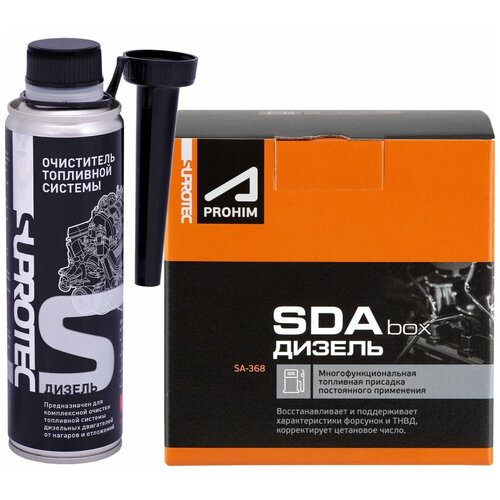 Набор Suprotec присадки в дизель СДА бокс 1 шт. + Очиститель топливной системы дизель 1 шт. 124152 - набор для комплексной очистки дизельной топливной системы.Очиститель топливной системы дизель — это средство разового применения для промывки топливной системы. Применяется один раз в 2,5-3тыс. км пробега. Состав представляет собой смесь растворителей, которая оказывает комплексное воздействие на загрязнения разных типов в холодном и горячем отделах топливной системы. Очиститель растворяет загрязнения в топливопроводах, клапанах, насосах, инжекторах или форсунках, способствует выжиганию органических компонентов в сажевых отложениях в камере сгорания. Очистка облегчает работу топливных агрегатов, восстанавливает нормальный топливный поток.Присадка в топливо СДА будет предотвращать образование новых загрязнений. В этом случае она работает как профилактическое средство, а потому актуальна к применению даже в новых автомобилях. Постоянное использование присадки предотвращает выход из строя электрических и пьезоэлектрических соленоидов, поддерживает в рабочем состоянии колодца форсунок, распылителя, запорной иглы, игл обратных клапанов и других деталей.Присадка в дизель СДА предназначена для мягкой очистки топливной аппаратуры, ее смазки, защиты от коррозии и предотвращения образования отложений. Применение присадки восстанавливает рабочие характеристики топливных насосов, форсунок и др. элементов топ. системы, защищает их от износа, продлевает срок службы.Комплексное восстановление топливной аппаратуры улучшает впрыск, снижает расход топлива и продлевает ресурс топливной аппаратуры.. Тип: для дизельного топлива . Объем: 0.7 л. Тип присадки: очистка, восстановление .