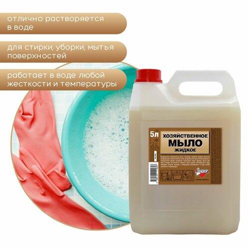 Марка; золушкаСерия; ХозяйственноеОбъем; 5000 млСтрана; РоссияМыло хозяйственное, жидкое изготовленное на натуральное основе, является жидким аналогом традиционного хозяйственного мыла. Предназначено для очистки различных твердых поверхностей, ручной и механизированной уборки внутренних помещений (мойка стен, полов, сантехнического оборудования) в торговых центрах, в быту, на комбинатах общественного питания, административных, учебных, медицинских и лечебно-профилактических заведениях. Может также использоваться для мойки посуды и стирки белья. Обладает бактерицидным действием. Мыло хозяйственное жидкое представляет собой водорастворимую концентрированную смесь мыла (щелочные соли жирных кислот), соПАВ, активных неорганических добавок.