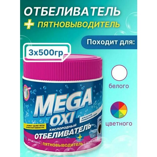 MEGA OXI отбеливатель и пятновыводитель кислородный для белых и цветных тканей, 500 гр *3