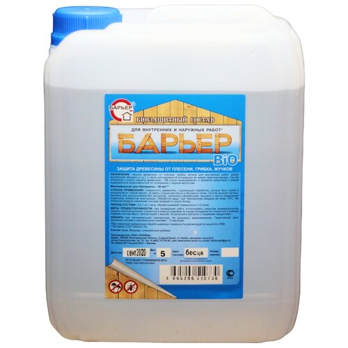 Биозащитный состав для древесины Барьер-BIO, бесцветный, канистра 5 кг
