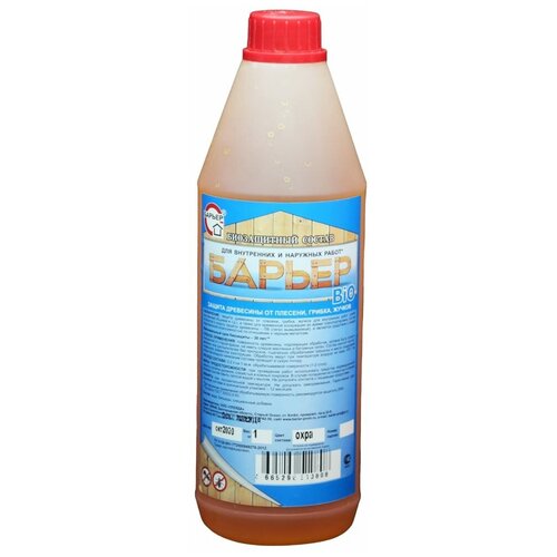 Биозащитный состав для древесины барьер BIO охра, бутылка 1 кг 4665296510808 предотвращает различные биопоражения деревянных конструкций. Действует бережно, не изменяя прочность и паропроницаемость материала. Эффективен против плесени, гнили, синевы, а также жуков-древоточцев. Продукт окрашивает древесину в теплый красновато-коричневый оттенок «охра». Может маскировать небольшие дефекты поверхности. «Барьер-bio» безопасен для людей и домашних животных.