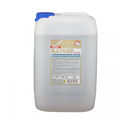 Водоотталкивающий состав Аква-Барьер Ультра «Мокрый камень» не только защищает обработанные основания от воздействия осадков и конденсата, но и придает им декоративный эффект мокрого камня. При условии соблюдения технологии нанесения гидрофобные свойства сохраняются не менее 10 лет. Аква-Барьер Ультра «Мокрый камень» предотвращает преждевременное старение фасада, позволяя без дополнительных затрат поддерживать его в ухоженном состоянии. Подходит для бетона, кирпича, шифера, природного камня, керамики, изделий из гипса и других минеральных поверхностей.Свойства — препятствует промоканию, загрязнению и обледенению поверхностей; — предотвращает появление плесени и мха; — не образует высолов; — повышает энергоэффективность материала; — увеличивает срок службы обработанных поверхностей; — устойчив к действию ультрафиолета.