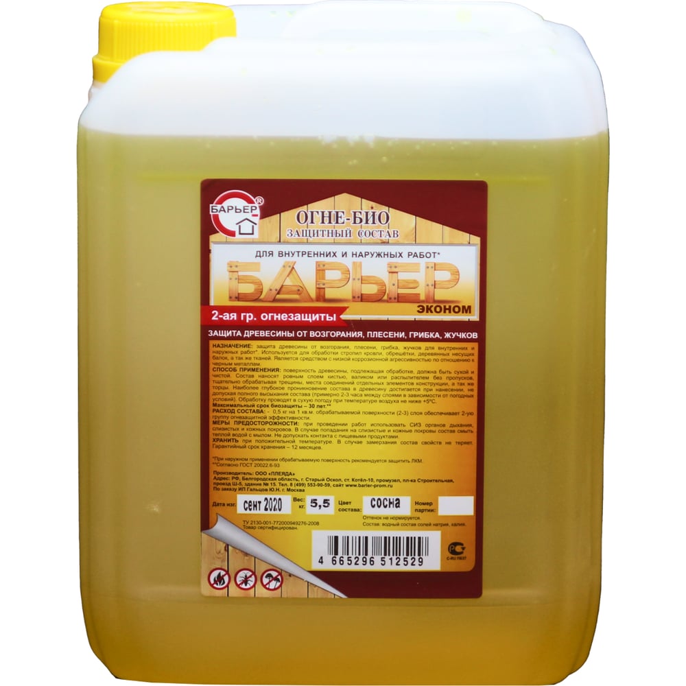 Огнебиозащитный состав для древесины БАРЬЕР / ЭКОНОМ / 4665296511058