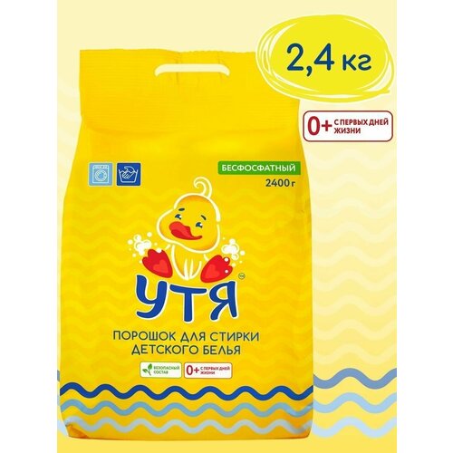 Порошок для стирки детского белья УТЯСредство моющее синтетическое порошкообразное гипоаллергенное 0+«Утя»Предназначен для замачивания, ручной стирки и стирки в автоматических машинахдетского белья из хлопчатобумажных, льняных, синтетических тканей и тканей изсмешанных волокон.Полностью выполаскивается и не образует пылиГипоаллергенно и безопасно для кожиНе содержит фосфатов, цеолитов, хлора, энзимов и оптических отбеливателейПодходит для ручной и машинной стиркиПодходит для всех типов стирки при температуре от 30°С до 90°С.