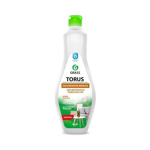Полироль для мебели Grass Torus Cream 500 мл. Назначение: Средство Torus Cream предназначен для защиты, восстановления и сохранения естественного вида деревянных поверхностей. Придает блеск, скрывает легкие повреждения, восстанавливает красоту, не оставляет разводов и пятен после применения, обладает антистатическим эффектом. Способ применения: на предварительно очищенную поверхность, нанести средство равномерным слоем и растереть сухой чистой салфеткой или микрофиброй. Меры предосторожности: Избегать попадания прямого солнечного света. Состав: ?30% очищенная вода;