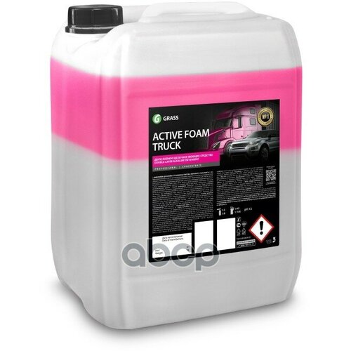 Эффективное моющее средство - активная пена Grass Active Foam Truck, 24 кг, для бесконтактной мойки, созданное специально для удаления особо сложных загрязнений с грузового и легкового автотранспорта. Предназначено для очистки кузова, тентов, шасси, бензобаков, двигателей, автоцистерн, транспорта, работающего на дальних перевозках. Оптимально для удаления пыли, грязи, масла, мазута и других дорожных загрязнений. Благодаря особым компонентам отлично работает в холодной воде и при низких температурах. Содержит антикоррозионные добавки.Состав: ≥ 30% вода, ≥ 5%, но <15% анионные ПАВ, неионогенные ПАВ, соль эдта, гидроксид натрия, органический растворитель, краситель.Способ применения: Взболтайте канистру;Перед нанесением средство необходимо разбавить с водой из расчета 1:5-1:8 (110-170г) в пенокомплект (1л) или 1:60-1:100 (10-16 г/л) для пеногенератора (25,50,100 л), в зависимости от степени загрязнения;Остудить кузов автомобиля;При необходмости сбить верхний слой грязи. Нанести разбавленный состав снизу вверх, чтобы избежать подтеков.Выдержать 1-2 минуты, не допуская высыхания;Тщательно смыть водой под высоким давлением с близкого расстояния (15-20 см) снизу вверх.