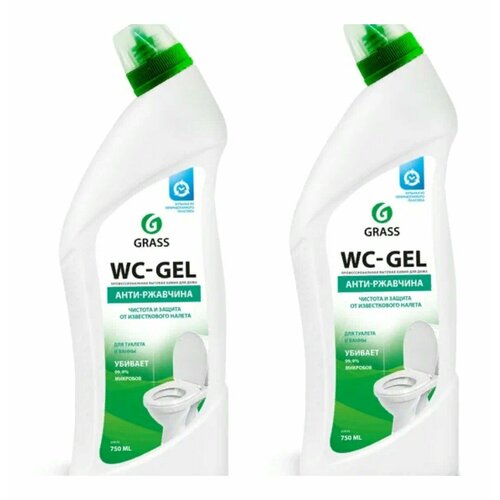Чистящее средство GRASS WC- Gel для сантехники, ванной кухни, унитаза от ржавчины, 1500 мл, 2 шт