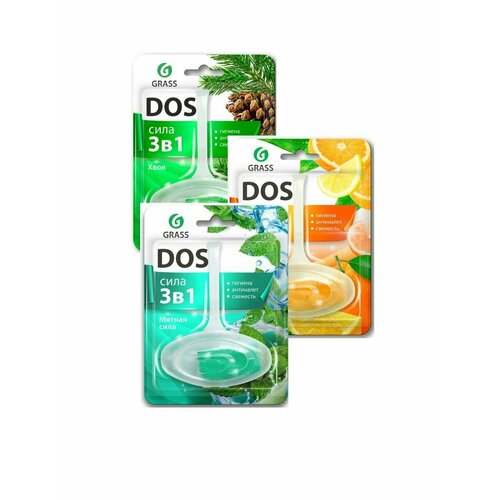 Подвесной блок для унитаза DOS 3 в 1 «Мятная сила». Устраняет неприятные запахи, обеспечивает долговременный уход и чистоту унитаза, предотвращает образование загрязнений и отложений известкового налета, обладает стойким ароматом, при смывании оставляет приятный запах и образует пену для активного очищения. 2 шт
